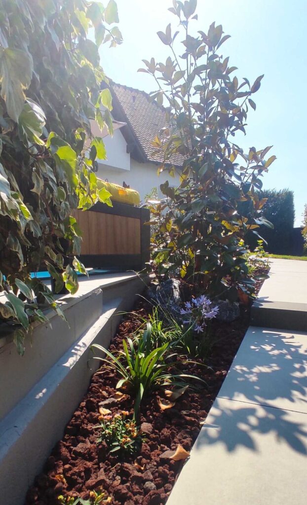 Nous sélectionnons avec soin des matériaux adaptés à un usage extérieur et au climat local, que vous soyez situés dans le Kochersberg ou ailleurs dans le Bas-Rhin. Bois, pierre naturelle, graviers, béton décoratif, dalles minérales, pas japonais, rochers paysagers… chaque élément est choisi pour sa résistance dans le temps, mais aussi pour sa capacité à créer une atmosphère soignée et chaleureuse, en parfaite harmonie avec l’environnement existant.